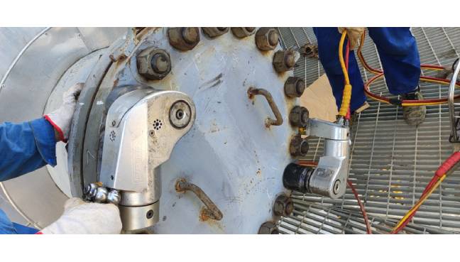 液壓扳手泵壓壓力正常,上壓驅(qū)動部位也有反應(yīng),但卻顯示無力,帶不動螺栓螺母,吃不上力,這個故障出現(xiàn)有三種可能。第一種,我們所要拆卸或者擰緊的螺栓扭矩遠(yuǎn)遠(yuǎn)高于我們所用扳手型號的最大輸出扭矩,也就是小馬拉大車就會“力不從心”轉(zhuǎn)不動。另外兩種情況都出在液壓扳手驅(qū)動部位機(jī)械故障。一個是連接銷斷裂導(dǎo)致活塞無法將力傳導(dǎo)至驅(qū)動部件;一個是驅(qū)動部件比如棘輪或者棘爪斷裂、嚴(yán)重磨損導(dǎo)致扳手驅(qū)動花齒吃不上力轉(zhuǎn)不動。