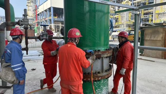 客戶現(xiàn)場工況屬于螺柱露頭較長,但空間和反作用力支點都沒有問題,我們推薦使用MXT30液壓扭矩扳手直接套在螺母上來預(yù)緊拆卸。對于中空液壓扳手來說,螺柱露頭長、預(yù)緊扭矩大是非常適用的工況。